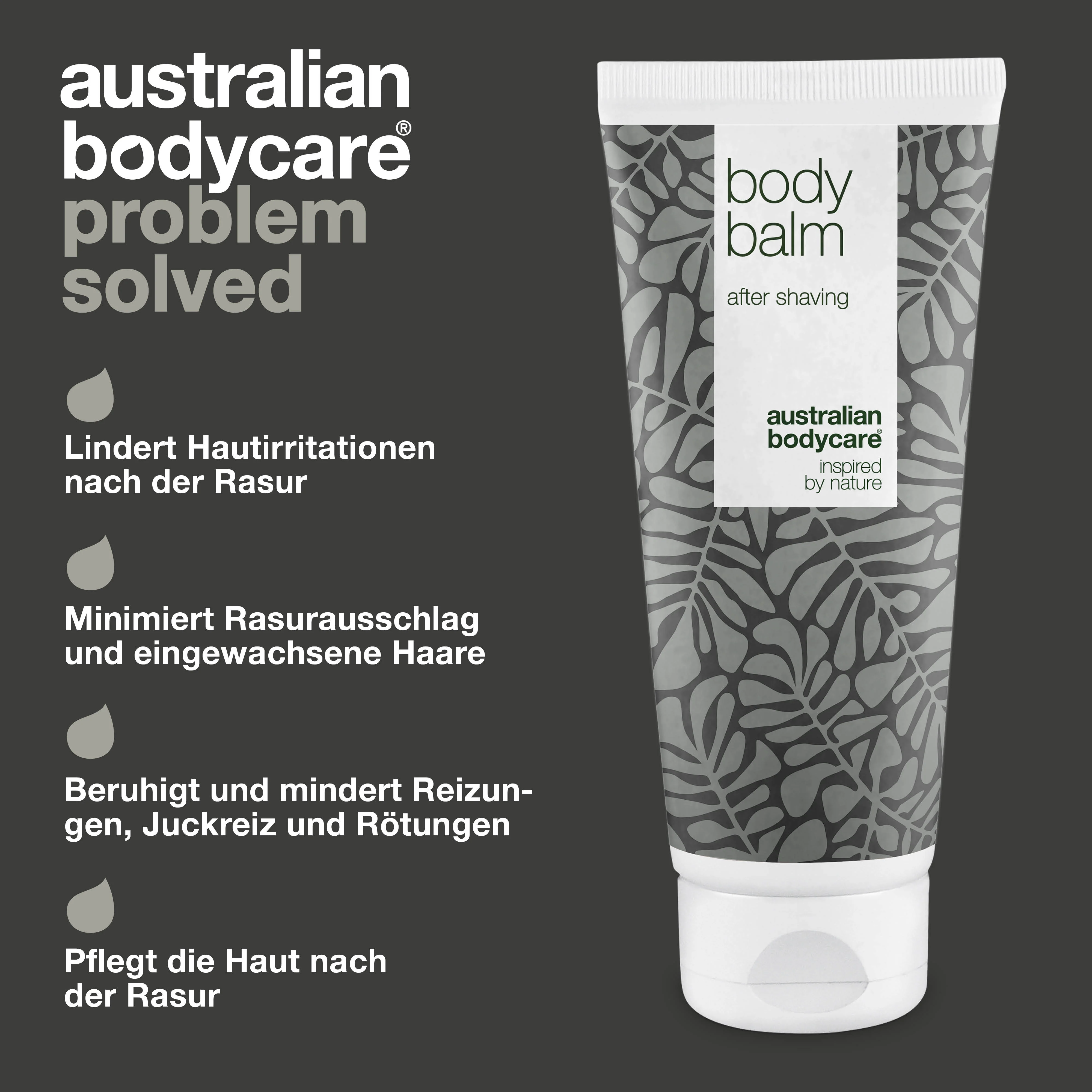 Aftershave Balsam gegen eingewachsene Haare, Rasurbrand & rote Rasierpickel nach der Rasur | Perfekt nach Rasur & Haarentfernung am Körper | 100% Natürliches Teebaumöl | Australian Bodycare Body Balm 200 ml.