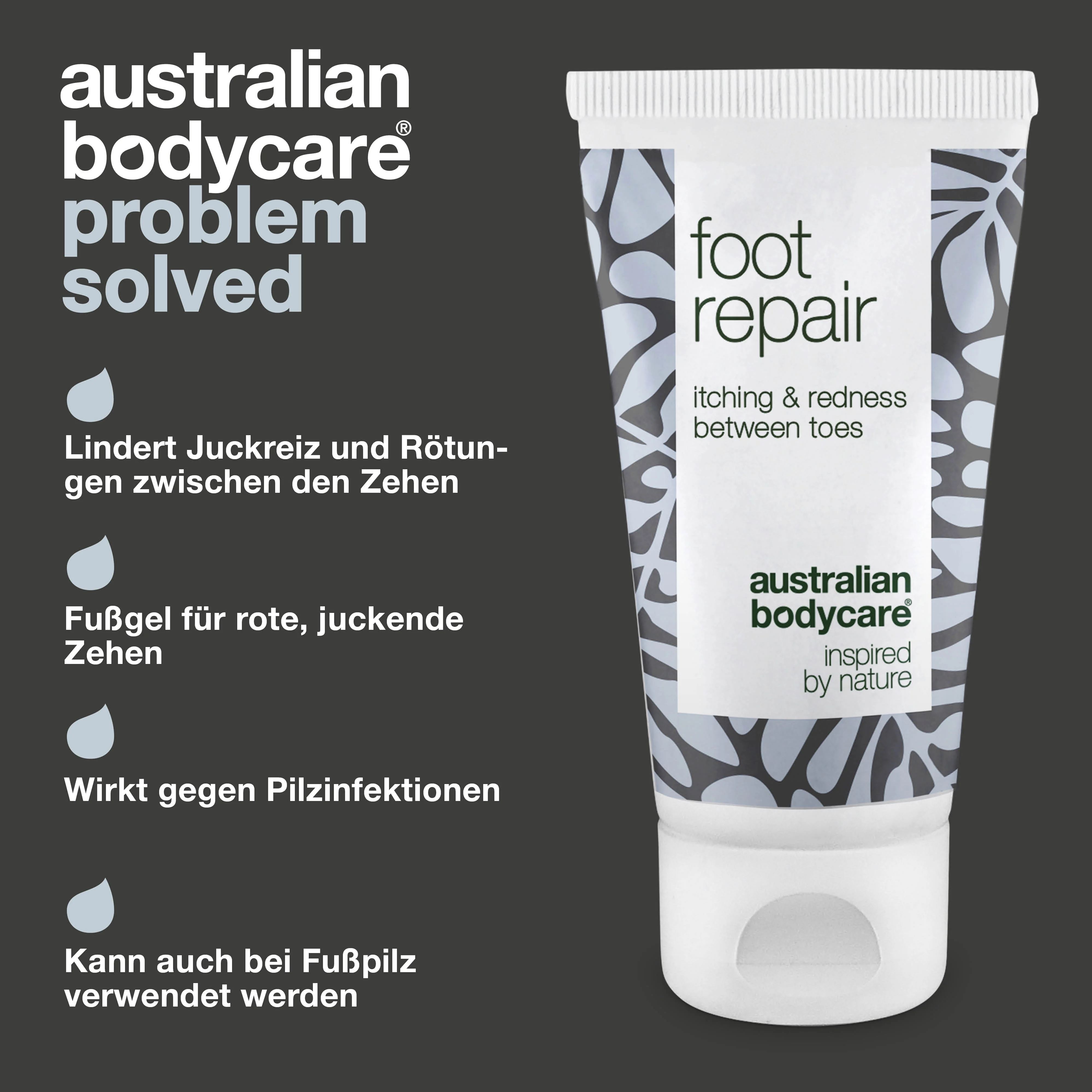 Australian Bodycare Foot Repair | Natürliches Gel für Frauen & Männer zur Fußpflege bei Juckreiz, Brennen, Rötungen zwischen den Zehen | Auch zur therapiebegleitenden Pflege bei Fußpilz anwendbar 50 ml.