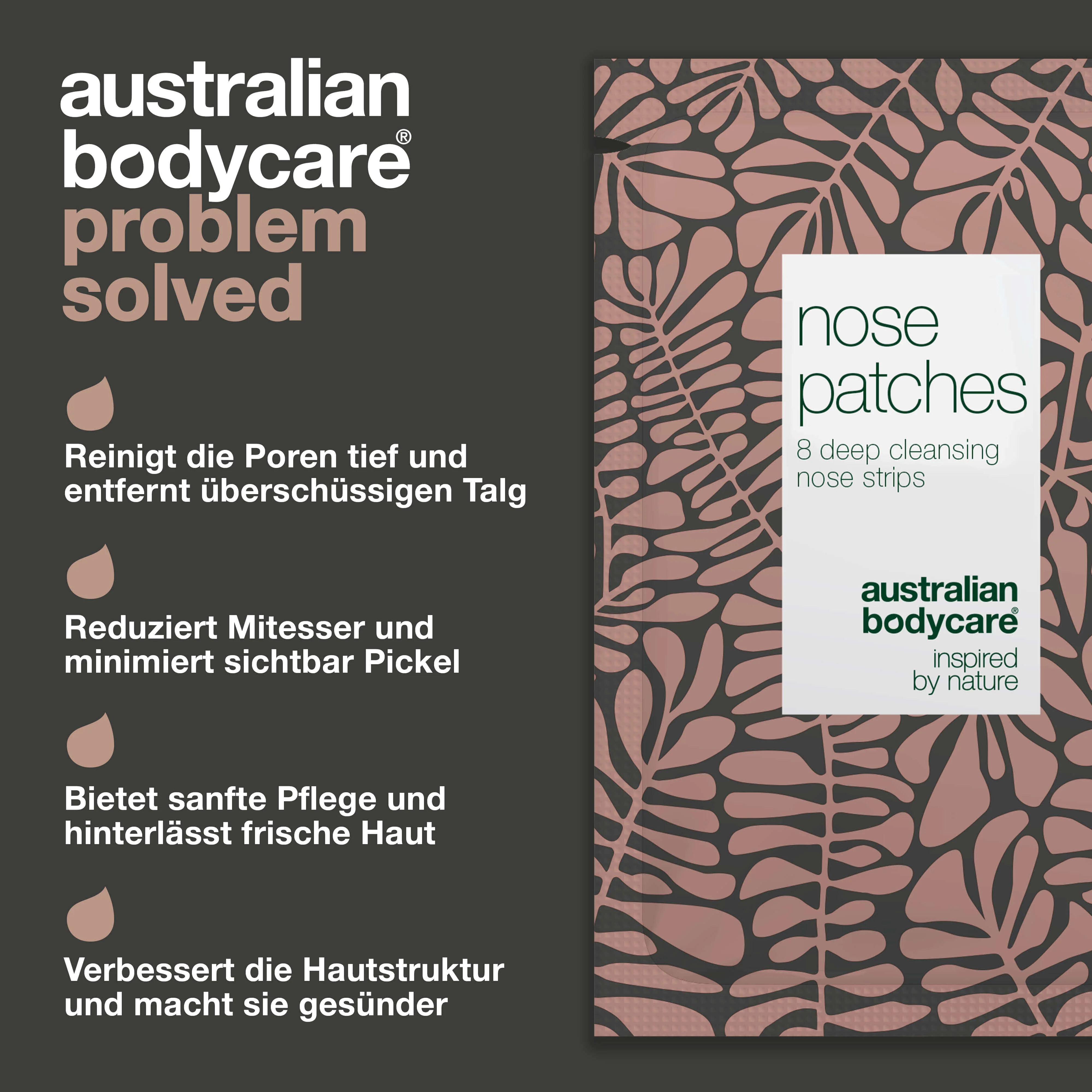 Bei Australian Bodycare stehen wir hinter der Qualität unserer Produkte. Probiere unsere Nose Patches noch heute aus und erlebe selbst die Vorteile von reinerer und glatterer Haut. Solltest du nicht vollständig zufrieden sein, erhältst du dein Geld zurück – ganz unkompliziert! Übernimm die Kontrolle über Mitesser und Pickel mit dieser sanften, aber effektiven Lösung.