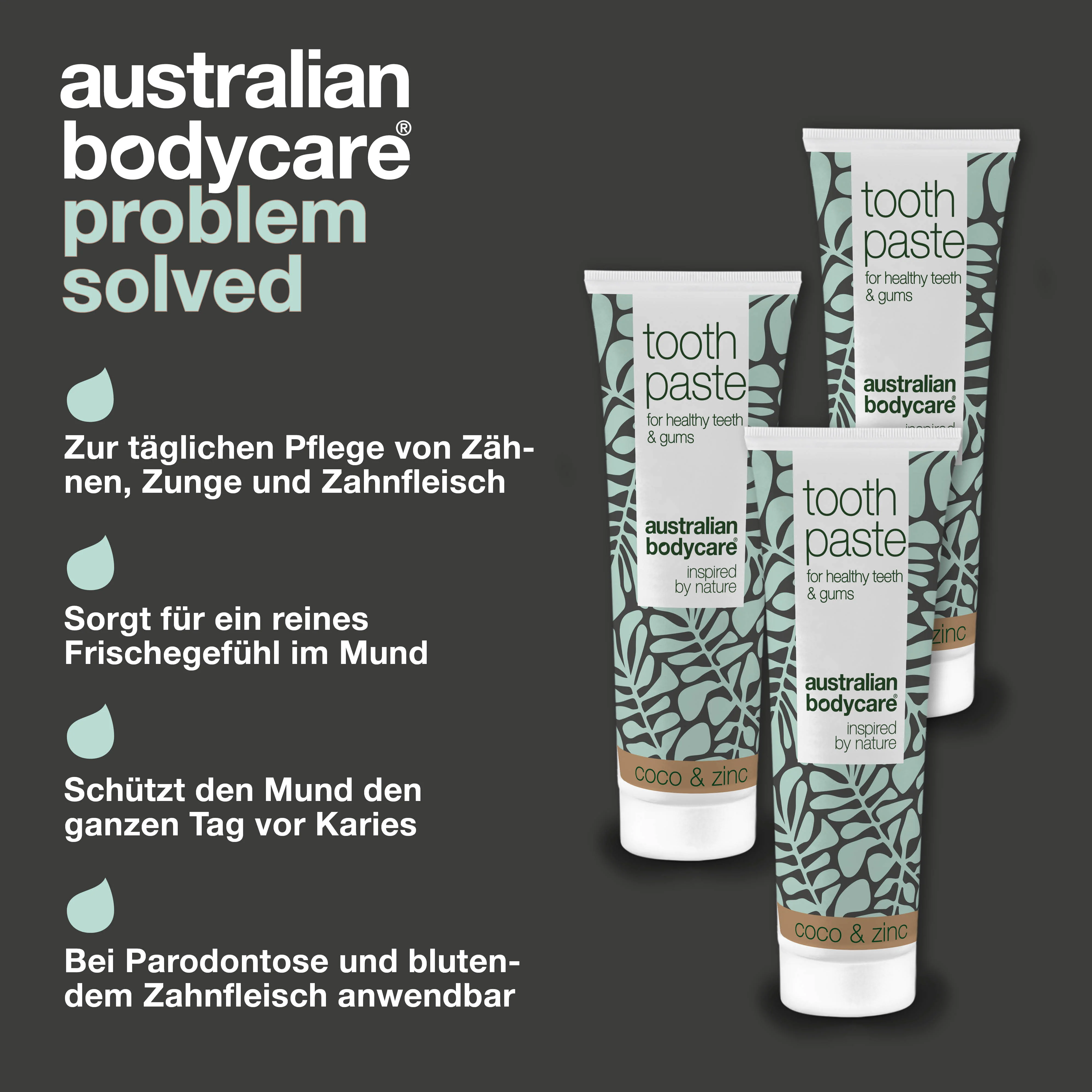 3 x Zahnpasta mit Teebaumöl, Kokosnuss & Zink — Für die tägliche Pflege bei Zahnfleischentzündungen oder Pilz im Mund und auf der Zunge—